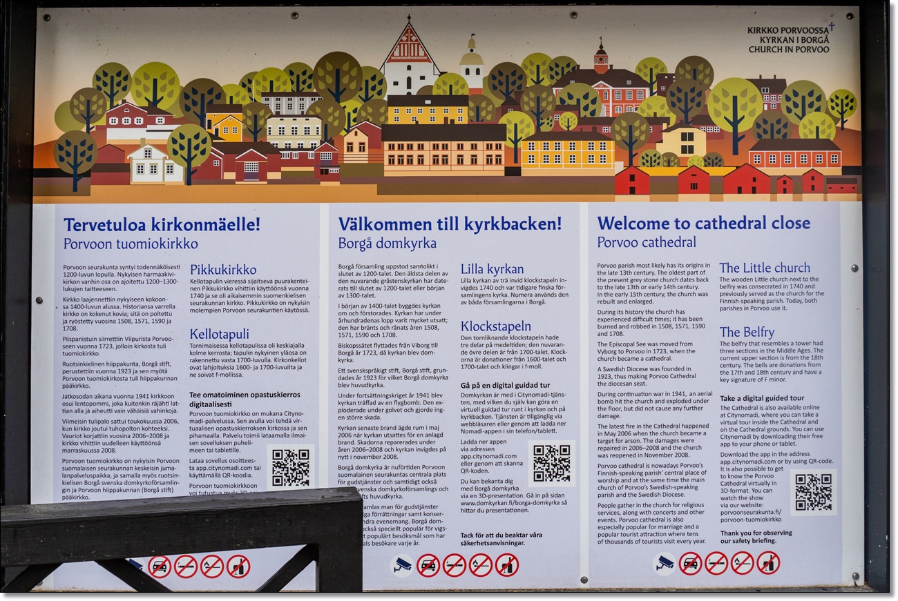 (A view of buildings in the Porvoo Old Town, including the Porvoo Cathedral)